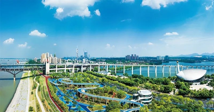 绿色是高质量发展的鲜明底色。近年来,江西省九江市坚持“还江于民、便民利民,生态优先、文化铸魂”原则,积极推进城市滨江绿地建设。图为2023年7月8日,长江国家文化公园九江城区段。石小龙/摄
