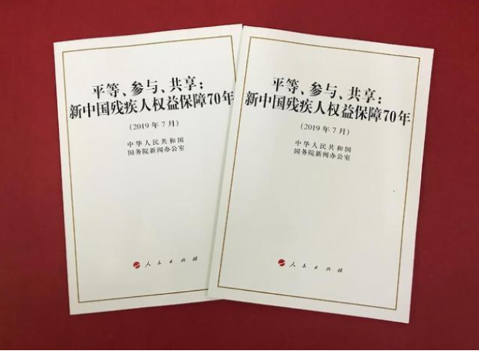 2019年7月25日,《平等、参与、共享:新中国残疾人权益保障70年》白皮书正式发表,白皮书全面介绍了中国残疾人事业取得举世瞩目的历史性成就。