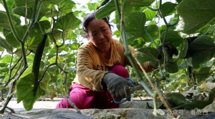 陇西县文峰镇三十铺村村民徐彩红:这个黄瓜是农历的10月初栽的苗,买来的靖远的苗,前天第一次采摘摘了120斤,卖了3.2元一斤,预计(到)今年(端午节)能卖5个月,毛收入能收个3万块钱。
