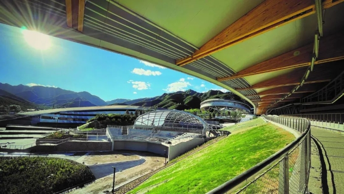 雪车雪橇项目被誉为“冰雪运动的F1方程式”。雪车雪橇场馆因场地落差大、赛道特殊复杂、冰面精度要求高,被认为是设计难度最高、施工难度最大、创新技术最多、建造工艺最为复杂的冬奥场馆之一。位于北京2022年冬奥会延庆赛区的国家雪车雪橇中心是世界第17个、中国第1个车橇场馆,也是目前世界唯一一座建设在山体南坡的车橇场馆,拥有世界唯一的380度回旋弯道。赛道全长1975米,最高设计时速134.4公里,垂直落差超过121米。国家雪车雪橇中心在北京2022 年冬奥会期间承担了雪车、钢架雪车、雪橇三个项目的比赛,为来自38个国家和地区的321名参赛选手服务,得到了国际专家和世界高水平运动员的高度评价和广泛赞誉。