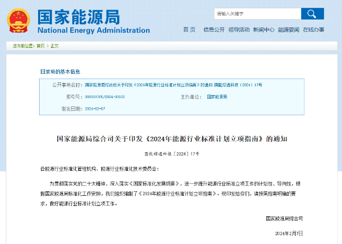 近日,国家能源局印发《2024年能源行业标准计划立项指南》,就进一步提升能源行业标准立项工作的计划性、导向性这一目的,对相关部门提出了明确要求,确保其能够落实好能源行业标准计划立项工作。
