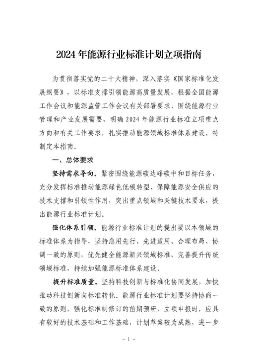 附件:2024年能源行业标准计划立项指南