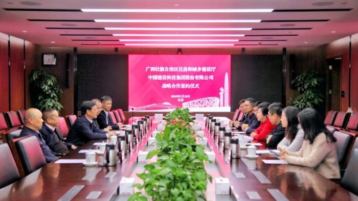 3月18日,中国建科与广西壮族自治区住房和城乡建设厅在京签署战略合作框架协议。中国建科党委副书记、总裁孙英和广西壮族自治区住房和城乡建设厅党组书记、厅长杨绿峰出席签约仪式并进行座谈交流。