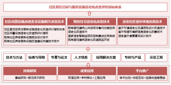 本课题响应了积极应对人口老龄化国家战略,聚焦广大老年人居家养老需求,重点攻克老年人居住环境品质提升技术问题。从既有住区配套设施、既有住宅及室外环境三个层面,开展跨领域技术研发与应用示范,形成了系统性创新成果:首次提出了城市社区适老性能评价指标体系;以“老年人、产品部品、居家环境”深度适配为基础,创建了“1通用6空间”住宅适老化改造技术体系;提出了以主动健康为目标的适老住区室外环境改善技术体系。本课题成果整体提升了居住环境对于老年人生活的安全保障、辅助支持、主动干预等作用,弥补室内外环境适老化改造领域的多项行业技术空白,为我国既有居住建筑适老化改造实施提供重要技术支撑。