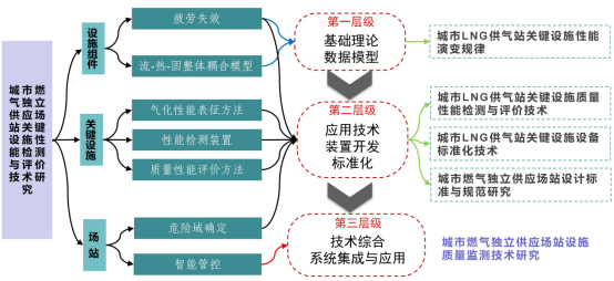 本项目针对液化天然气气化设施在实际运行过程中存在的问题和不足,从燃气独立供应场站的“组件、设施、场站”3个部分,开展“基础理论机理—技术装置与标准—工程示范应用”3个层级的研究,包括4个创新性成果:一是国际首创城市LNG场站用关键设施的质量耐用性评价技术;二是国内首创LNG气化设施及附件的性能检测装备;三是创立了城市燃气独立供应场站运行安全与设计标准化技术;四是首次构建了涵盖燃气独立供应场站在线监测、统计分析、智能巡检等功能的一体化城镇燃气场站智能监控集成系统。本项目成果应用在江苏、贵州、河北、天津、山东、山西等地的32个相关项目,解决了场站运维、安全防护及标准化等方面的众多难题。