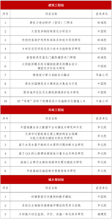 日前,中国建科发布《关于表彰2023年度集团科技进步奖、标准创新奖和优秀工程设计奖获奖项目的通知》。2023年度科技进步奖获奖项目共65项,其中:建筑工程组获奖37项,包括特等奖1项、一等奖6项、二等奖10项、三等奖20项;市政工程组获奖18项,包括一等奖3项、二等奖6项、三等奖9项;城乡规划组获奖10项,包括一等奖2项、二等奖3项、三等奖5项。