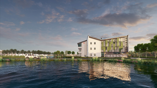 中森公司结合乡村振兴在上海落地实施康养项目的首期配套性建筑,其造型抽象提取江南水乡粉墙黛瓦的传统风格空间,内院、坡顶、屋顶花园等传递出独特的建筑风格语言,可为社区居民提供养老和医疗等一站式服务。伏虎村乡村振兴项目入选上海市乡村振兴示范村创建名单。