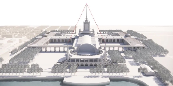 过去的艺术作品不论产生在哪种社会条件下,在物质文化和艺术名迹的形式和用途上,都会留下自己的标志的,但在这些名迹上,首先是不朽的建筑作品上,不管他的用途如何,人民总要表现自己的文化、自己的艺术,总要在石头上铭记下人民历史中的伟大事件。除了“社会主义现实主义”,彼时的前苏联还有一句响亮的口号“社会主义内容,民族形式。”所谓内容的体现,基本上就是用各种方法表现社会主义优越性,而这时的民族形式主要是奉古典传统为圭臬。就像我们经常提到“汉唐风格”“明清法度”一样,追寻古典通常都要把祖上最光荣的时代翻出来。这也容易理解,伟大时代的建筑通常在规模、技术和艺术上都更具有代表性,的确容易激发出民族自豪感。