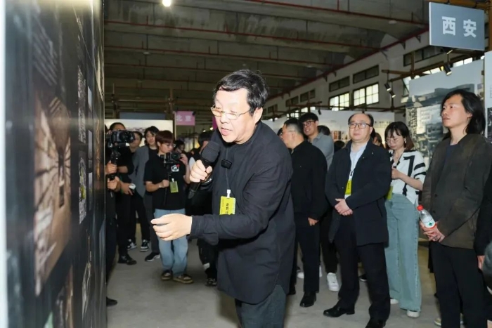 ▲ 崔愷(左)、董丹申(中)致辞,王健(右)主持开幕式崔愷表示,在“一地一策”的城市更新工作中,设计师应该从以往专注服务甲方向发现城市问题转变,从关注独立作品的完成到研究城市、向城市学习转变,充分认识到城市更新是一个漫长的陪伴过程,需要系统、长期的服务。董丹申谈到,崔愷院士团队针对城市更新开展了前瞻性思考和开拓性实践,与参展各方共同分享丰富实践、总结宝贵经验,为这个日趋重要的议题作出了显著贡献。
