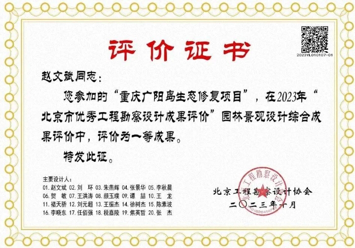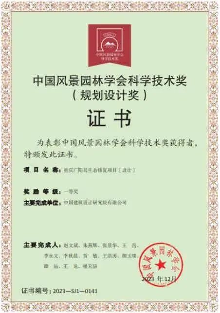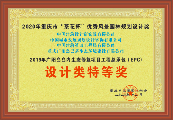 获评重庆市“茶花杯”优秀风景园林规划设计奖特等奖