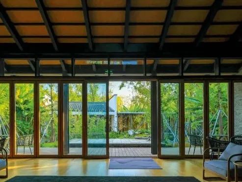 小桃源本来就是个码头,是开启玉山草堂水系泛舟的起点。利用原来房屋的隔间,一间一船,在登船之余,屋内可品茗饮茶,走廊可以通过景框欣赏五谷菜园。
