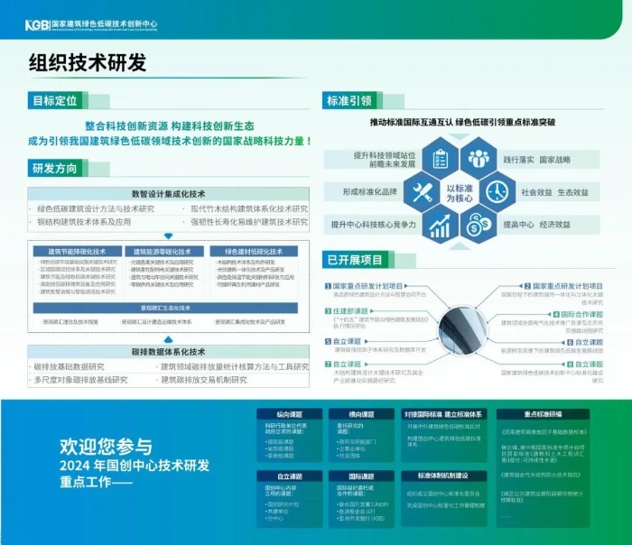 大会期间,国创中心将全面展示中心建设背景、战略定位、总体规划、重点任务以及各项业务开展情况,以技术研发、示范创建、成果转化等具体路径,推动建筑行业绿色低碳转型升级。