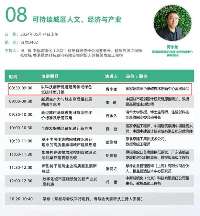 本次论坛的召开正值国家加速推进节能减排、重点行业控本降耗、产业转型和环境战略升级之际,建设可持续城区将为实现经济、社会、文化和环境协调发展,提高居民生活品质,促进城市长期繁荣奠定坚实基础。特邀行业专家聚焦科技创新支撑可持续城区人文、产业与经济发展,探讨国际可持续领域代表工具——ESG评价体系引入新型城市基础设施项目应用示范等议题。国创中心高级顾问胥小龙将作题为《以科技创新促进建筑领域绿色低碳转型升级》的报告。
